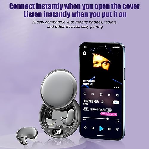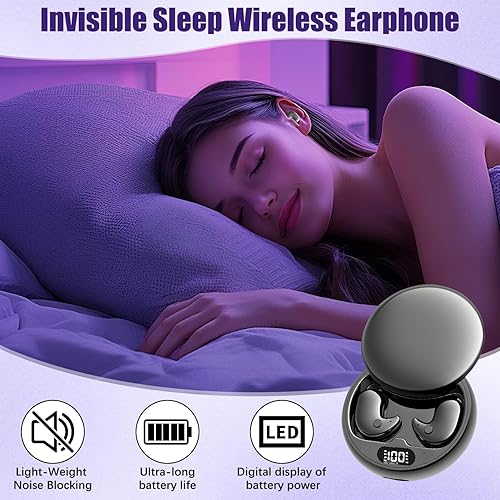 Sleep Ear Buds, Invisible Sleep Wireless Earphone, Comfortable Fit LED Power Display for Sleeping, Working, Hiking (Black)(Black)