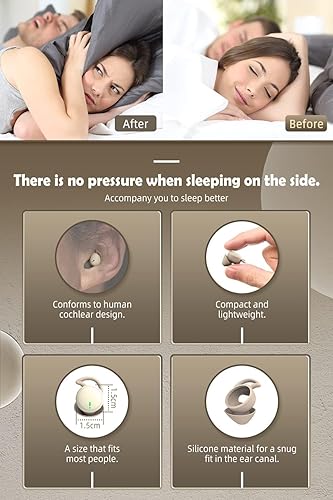✅【Ultra Light & Ultra Small ✨ High Sound Insulation】Taking the needs of side sleepers as the starting point, it almost meets the high sound insulation performance and ultra light, ultra small features that people need when looking for sleep headphones. Convenient to use the headphones while sleeping, they are miniature in size, weighing only 2.1 grams per ear, and are designed to fit the shape of the ear to minimise the burden on the ear, so that they won't hurt the ear even if you roll over or fall asleep while wearing them.