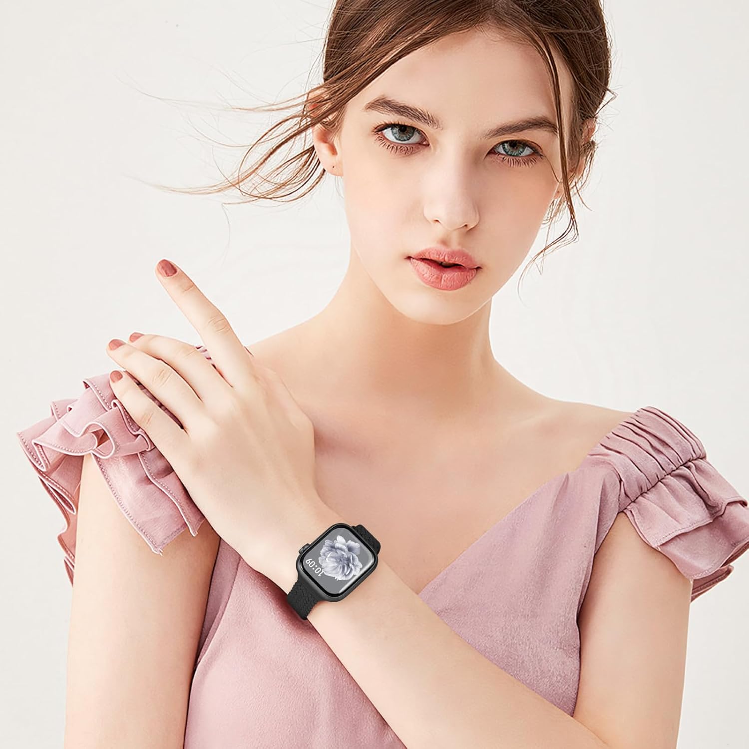 Slim. Stylish: The ultra thin Apple Watch bands for women are tailored for women, providing a chic, refined look that complements any outfit. The 16mm-width sleek design snugly fit skinny wrists and look more feminine, highlight your unique taste and match your mood and outfit day by day!