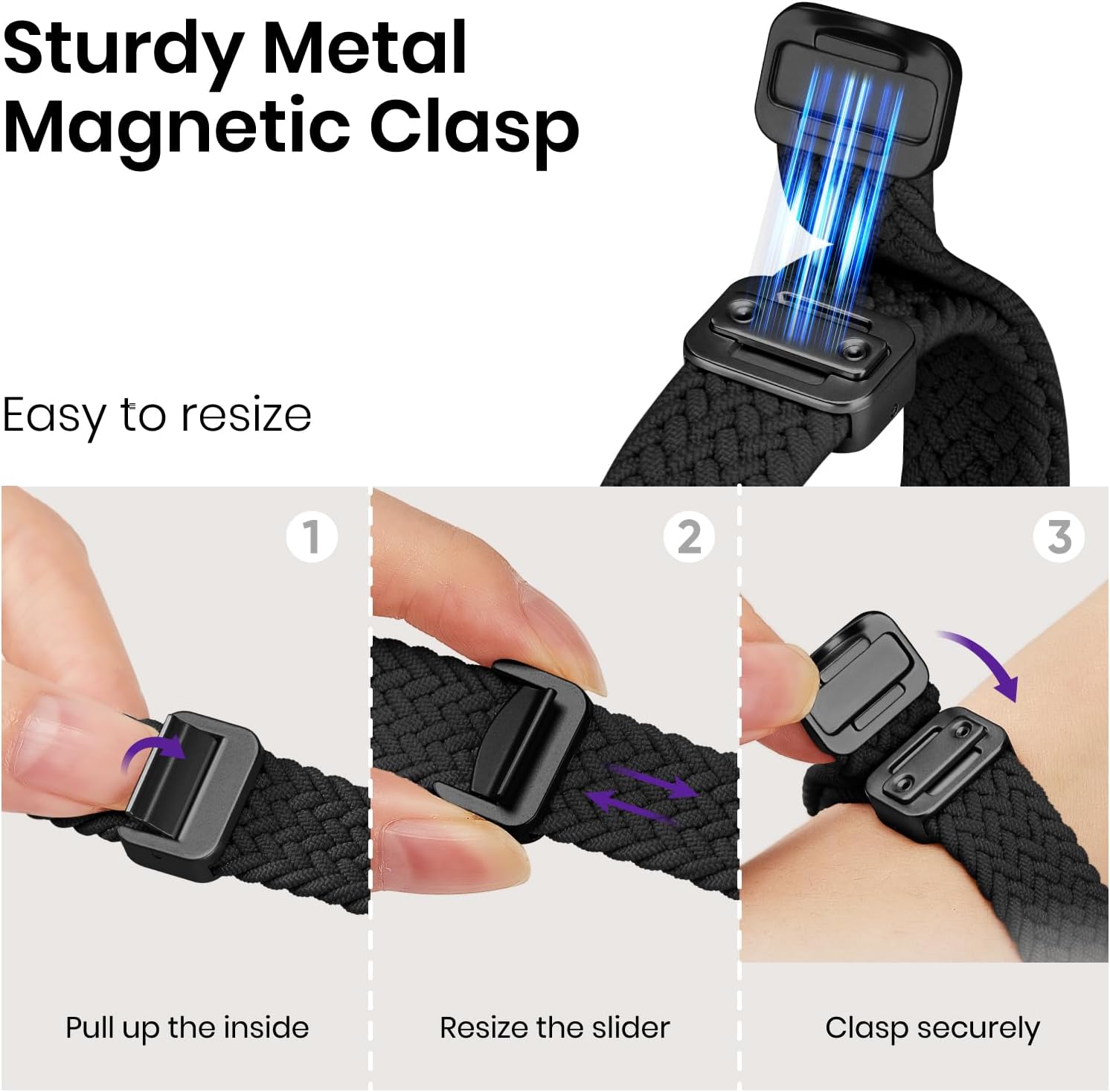 Secure. Durable: Experience the perfect blend of convenience and security with our Apple watch series 11 band. Featuring a reinforced metal magnetic clasp that can freely resize to your desired length. Its stretchable elasticity ensures a snug and comfortable fit, suitable for wrist of 4.7"-8.7" (119mm-220mm) .