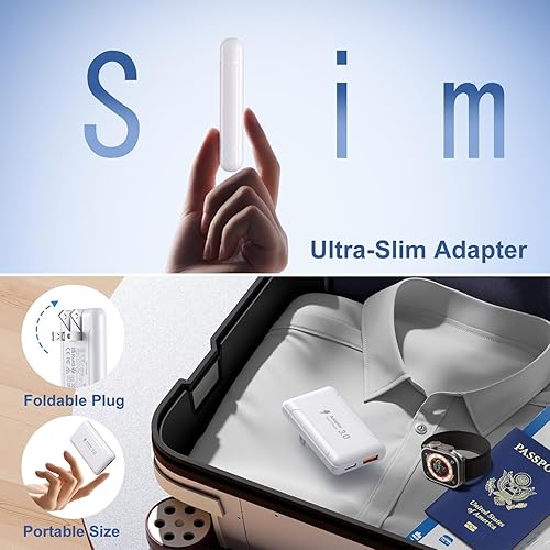 【Flat Portable Phone Charger】: Lightweight and ultra-slim size (only 0. 59 inches thick) is ideal for narrow place and hard-to-reach outlet that behinds furniture. Moreover, foldable plug design is convenient to carry and keep, especially put in your pocket or bag during business trips or vacations.