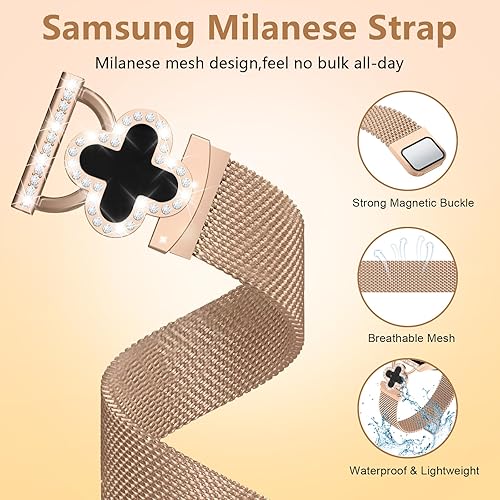 Comment on "Slim Magnetic Milanese Loop for Samsung Galaxy Watch 7/6/5/4 40mm 44mm/Watch 5 Pro 45mm/Watch 4 Classic 46mm 42mm, Stainless Steel Bracelet with Four-clover Charms for Women(Rosegold band with black four-clover,20mm)"