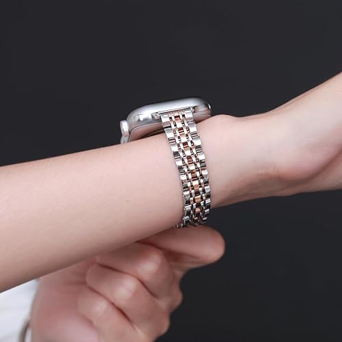 Slim Metal Band Compatible with Apple Watch 42mm(Series 10) 41mm 40mm 38mm, women's exquisite stainless steel link strap for iWatch Series 10 9 8 7 6 5 4 SE(Silver/Gold & Silver/Rose Gold,42/44/45mm/(S10)46mm)