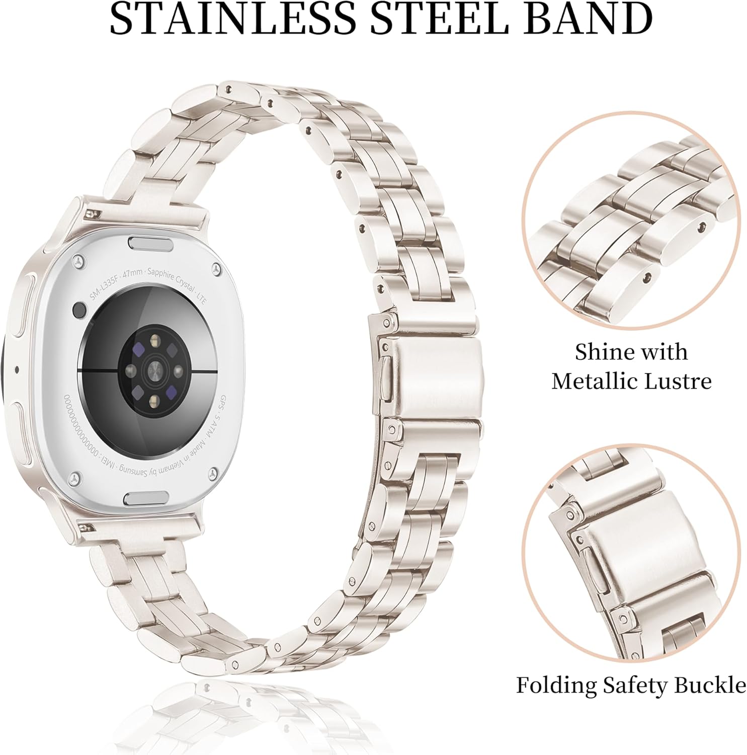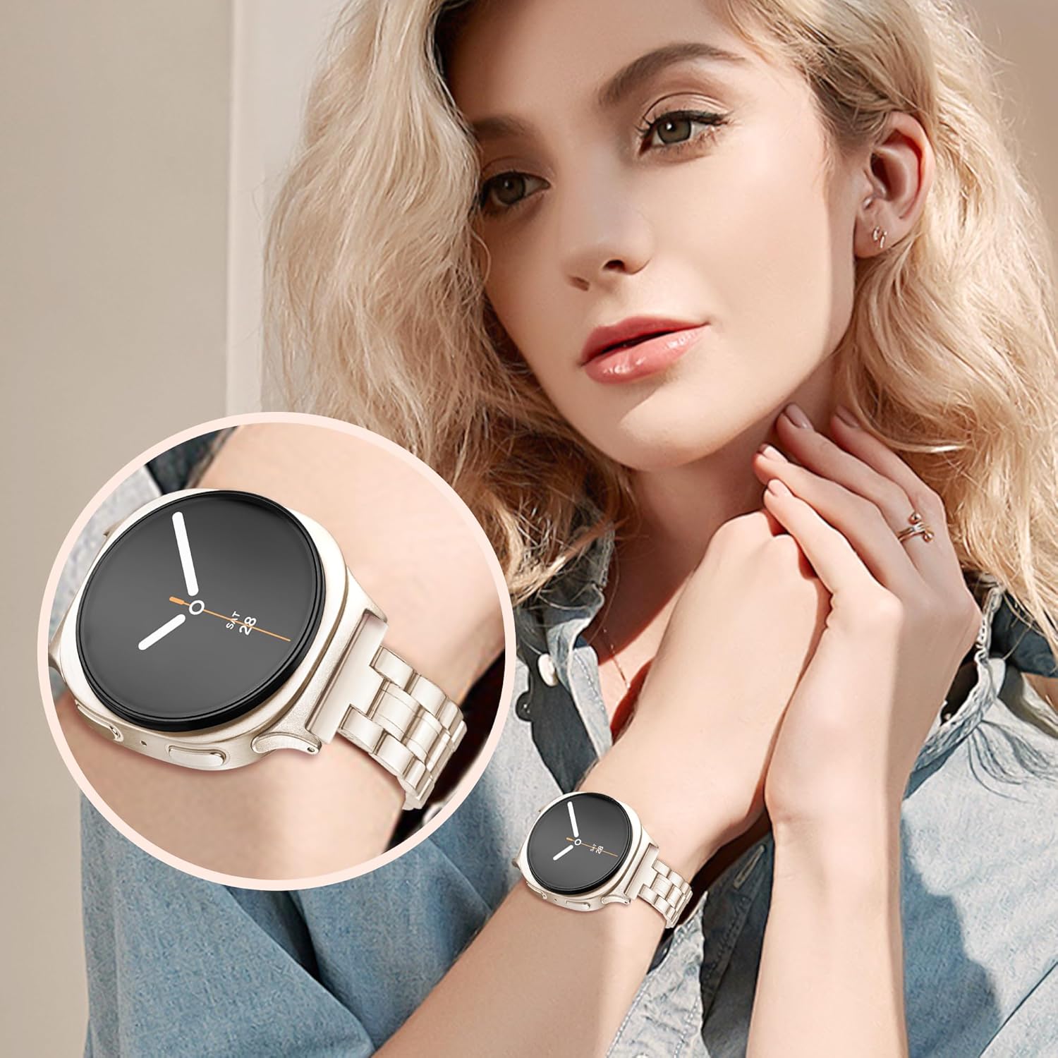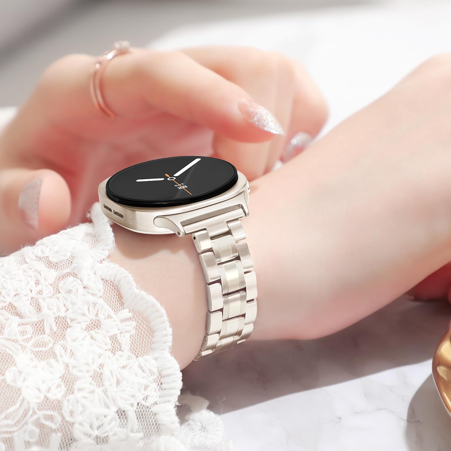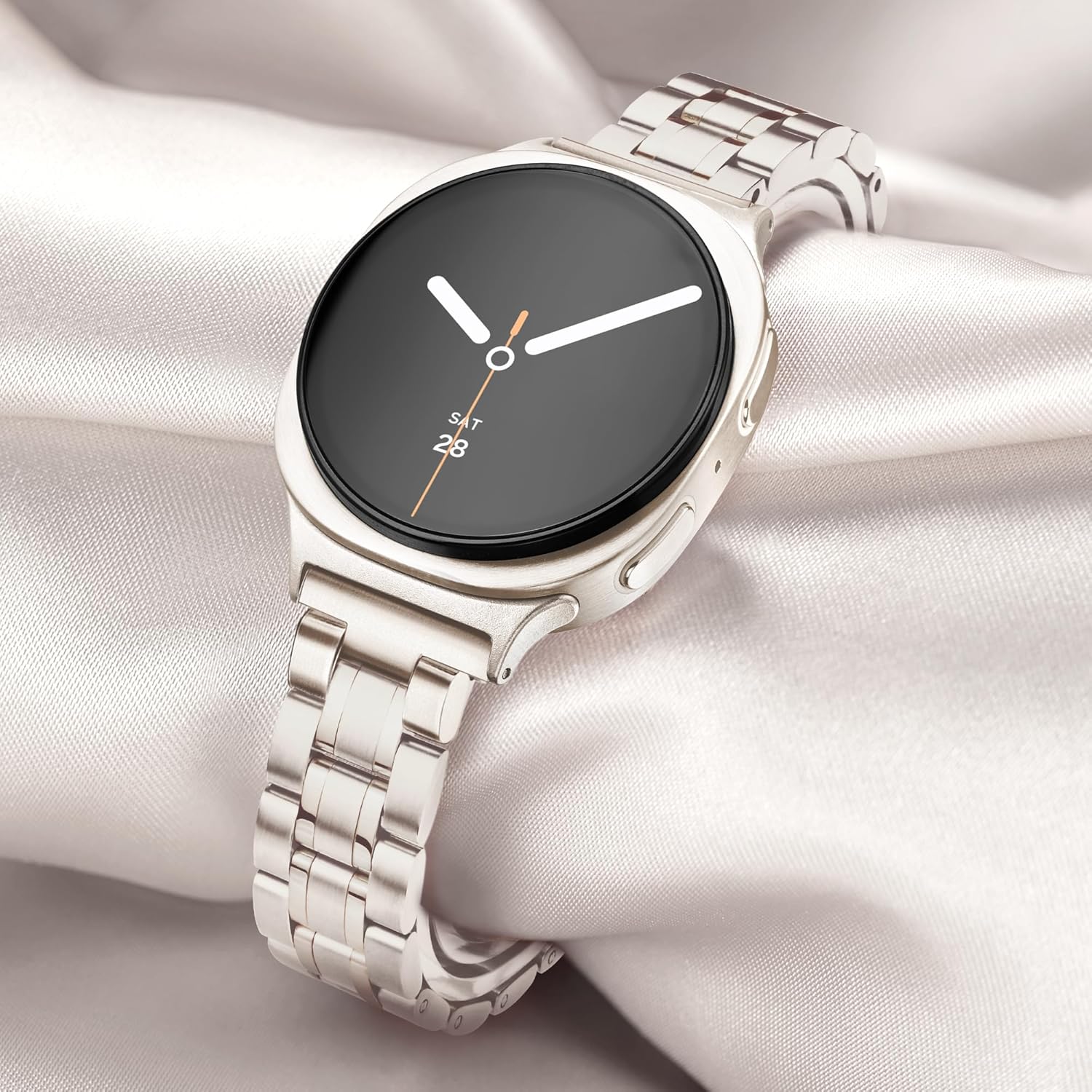 Comment on "Slim Metal Band for Samsung Galaxy Watch 8 Band 40mm 44mm/Galaxy Watch 8 Classic Band 46mm Women Men, Stainless Steel Thin Dressy Replacement Bracelet Strap for Samsung Watch 8 Bands-Gold(Matte Silver,Galaxy Watch 8/8Classic Band)"