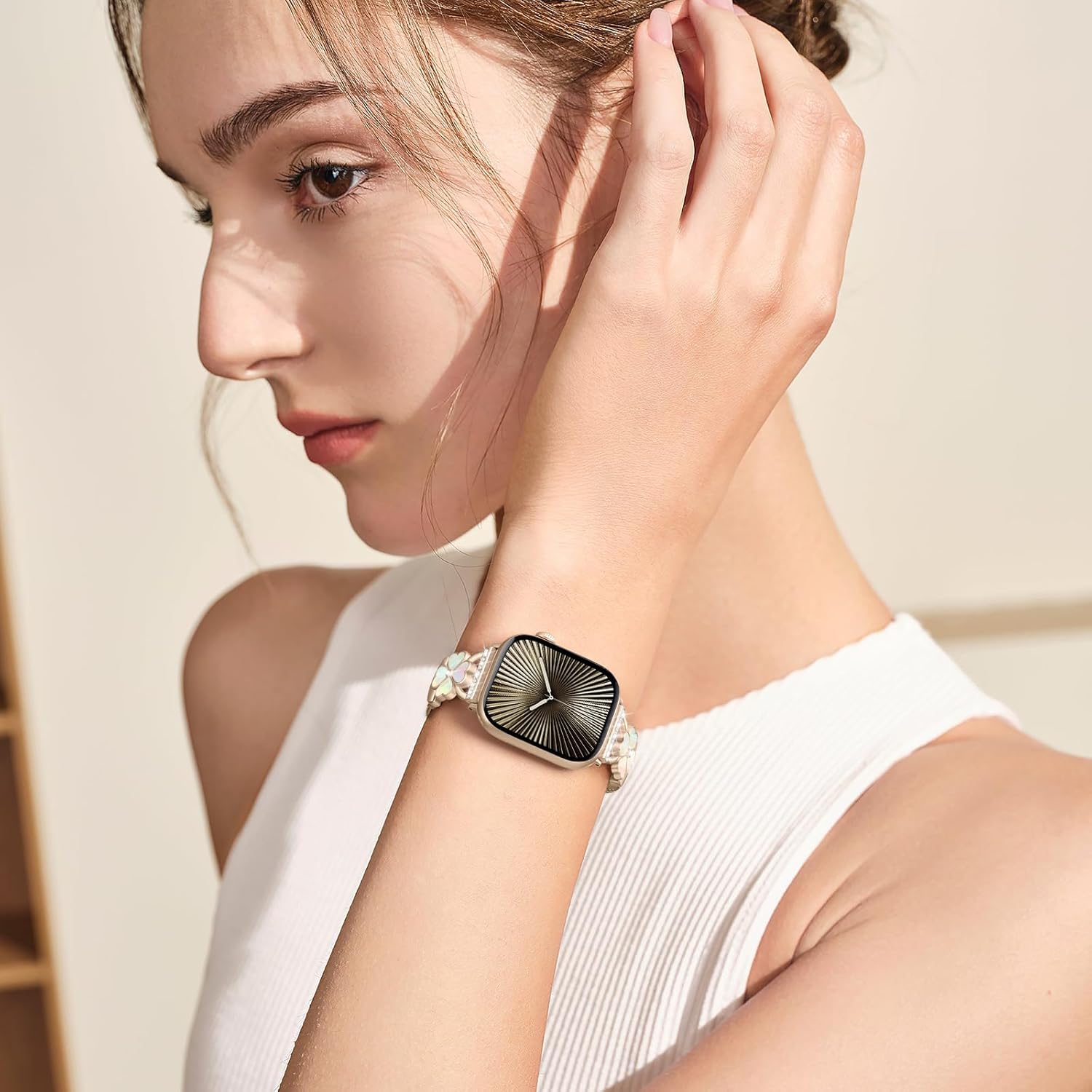 Strong Magnetic Closure: Featuring strong built-in magnets, the fancy apple watch series 11 bands for women can be easily adjusted, while the magnets securely lock it in place, preventing it from falling off or coming loose during daily activities. This design delivers a convenient and secure wearing experience