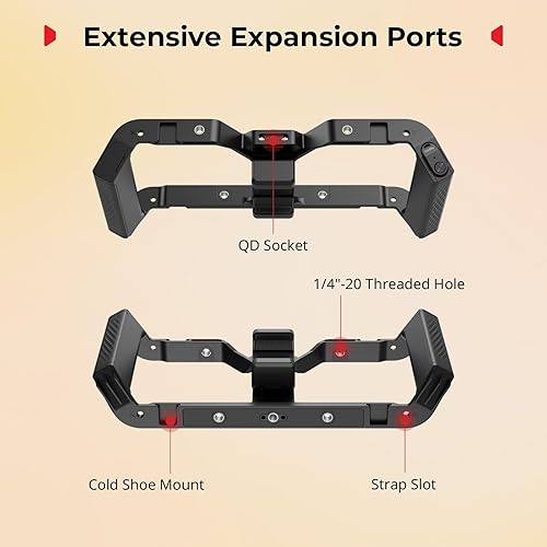 Extensive Expansion Ports: 4 cold shoe mounts, 4 strap slots, 5 1/4"-20 threaded holes, and QD socket support connecting devices such as handles, tripods, microphones, and fill lights, enhancing professionalism.
