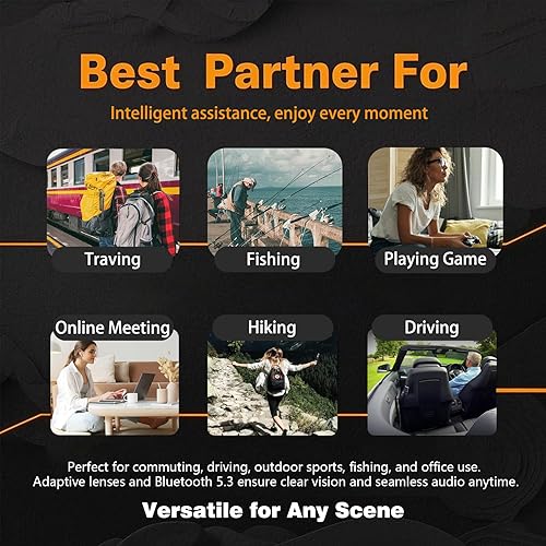 【Perfect for Multiple Scenarios】 Whether you're traveling, attending business meetings, driving, hiking, fishing, or simply enjoying music, Giionva smart glasses with bluetooth for women enhance your experience with hands-free translation and audio support