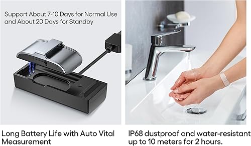 Long Battery & Waterproof: Up to 10 days of use with 2-hour charge; IP68 water resistance makes it splash-proof, sweat-proof, and suitable for daily use. Compatible with iPhone & Android.