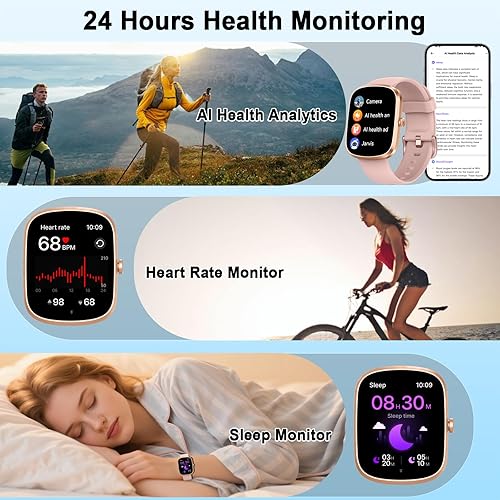 24/7 Health Monitoring and AI Health Analysis:The womens watch has a built-in optical sensor that will provide 24-hour accurate monitoring of heart rate, blood oxygen, stress and sleep quality(deep sleep, light sleep and awake). This android smart watch comes equipped with ChatGPT AI. Its AI health analysis function records your health data and give you advice to help you adjust the lifestyle. Make your life better and healthier.