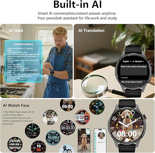 【1.46'' HD Touchscreen and 2 bands】-This smartwatch for Men/women offers crisp visuals and highly responsive touch sensitivity. Premium materials for a durable design that blends style and sport style. Scratch-resistant, impact-resistant, and exceptionally drop-resistant.Durable leather strap and comfortable silicone watch strap in the package, you can change different watch straps according to different needs.