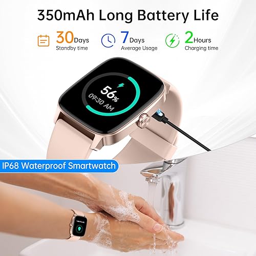 IP68 Waterproof & 350mAh Long Battery Life: This android smart watch is IP68 rated waterproof, so you can wear it while washing your hands, face or daily sweating without worrying about water intrusion. (Do not use for baths, saunas, hot springs, etc.). Smart watch for women android balances capacity and efficiency, ensuring up to 7 days of active use and 30 days on standby
