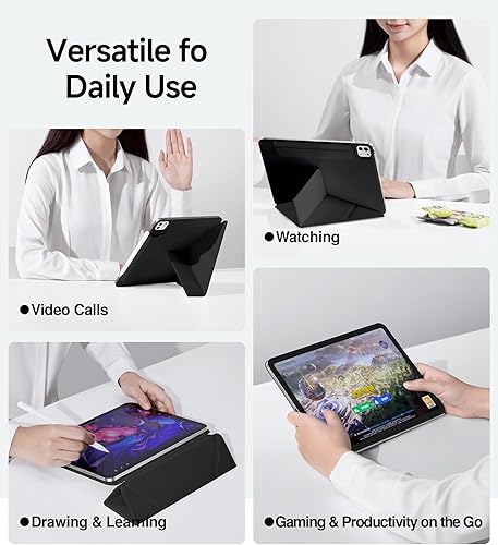 Versatile Stand: The foldable magnetic Y-shaped cover easily transforms into a stable stand, offering multiple viewing and writing angles. Enjoy hands-free entertainment or effortless note-taking with Apple Pencil anytime, anywhere.