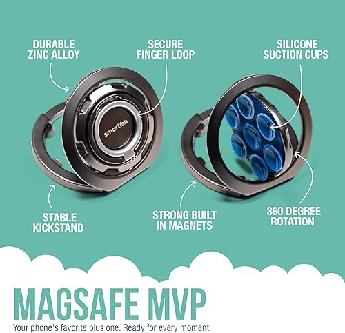 Comment on "Smartish® MagSafe Suction Mount - WallFlower - 3 in 1 Reversible Magnetic Phone Grip Finger Loop, Suction Mount, Kickstand w/Universal MagSafe Adapter Kit for Apple iPhone - Black Tie Affair(Blues on the Green)"