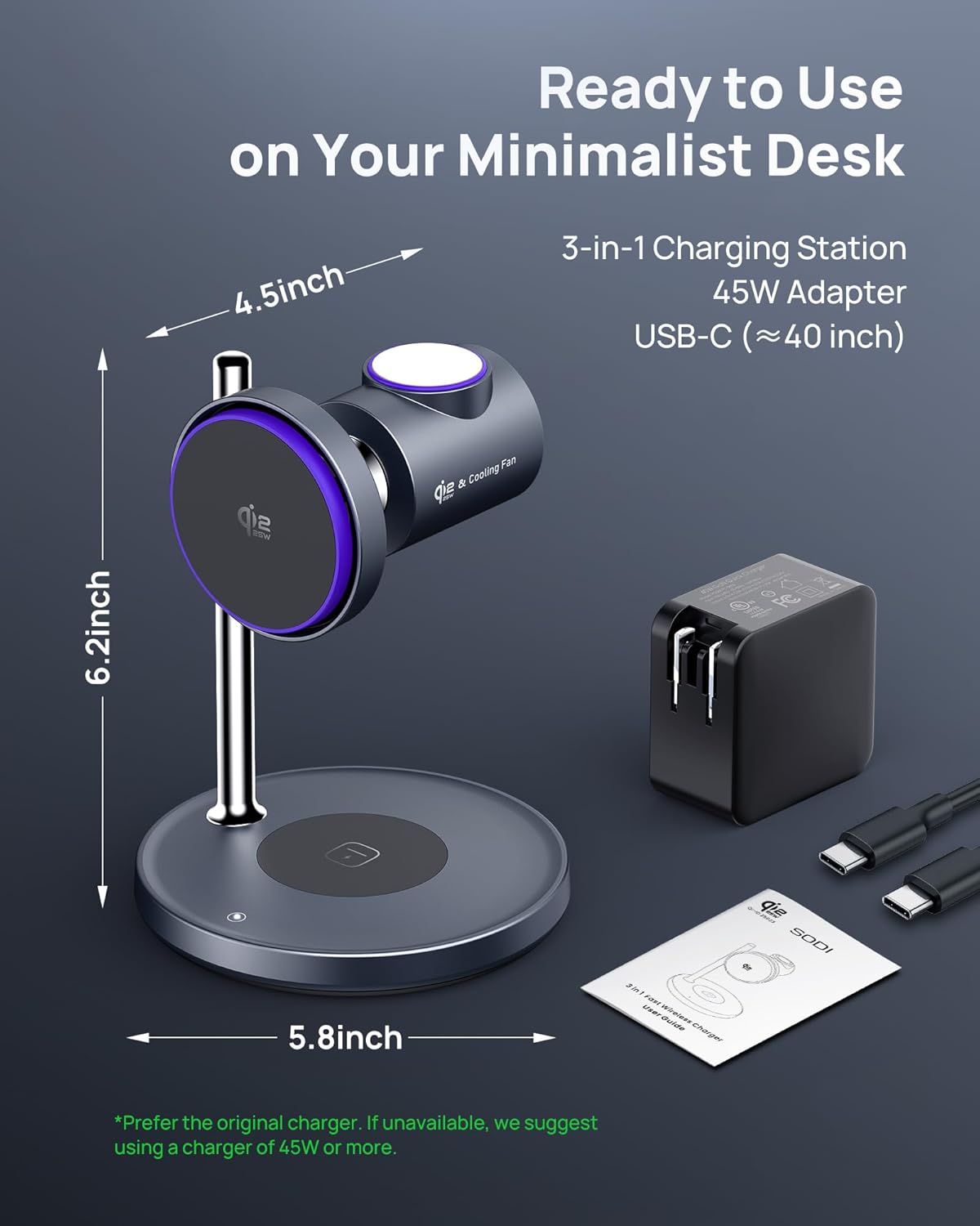 Comment on "SODI Qi2.2 Certified 25W Magnetic Charging Stand, 3 in 1 Wireless Charger Station with Cooling Fan, for iPhone 17/16/15/14/13/12, Apple Watch, AirPods (GaN Adapter Included)(Warm Gray)"