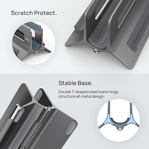 【Elegant Tower-Inspired Design】 Elevate your workspace with the SODI vertical laptop stand, featuring a sleek, minimalist aesthetic reminiscent of the iconic Eiffel Tower. Crafted from premium aluminum alloy with sandblasted for a premium texture akin to your Mac Book vertical stand, serves as a workspace organizer and home office essential.