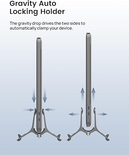 【Effortless Gravity Auto-Lock Mechanism】 Say goodbye to fiddly adjustments! Our innovative gravity-activated locking system in this laptop stand vertical ensures quick, secure placement. No tools or complicated setups needed—just slide in your device and let gravity do the work, providing peace of mind and seamless integration into your daily routine.