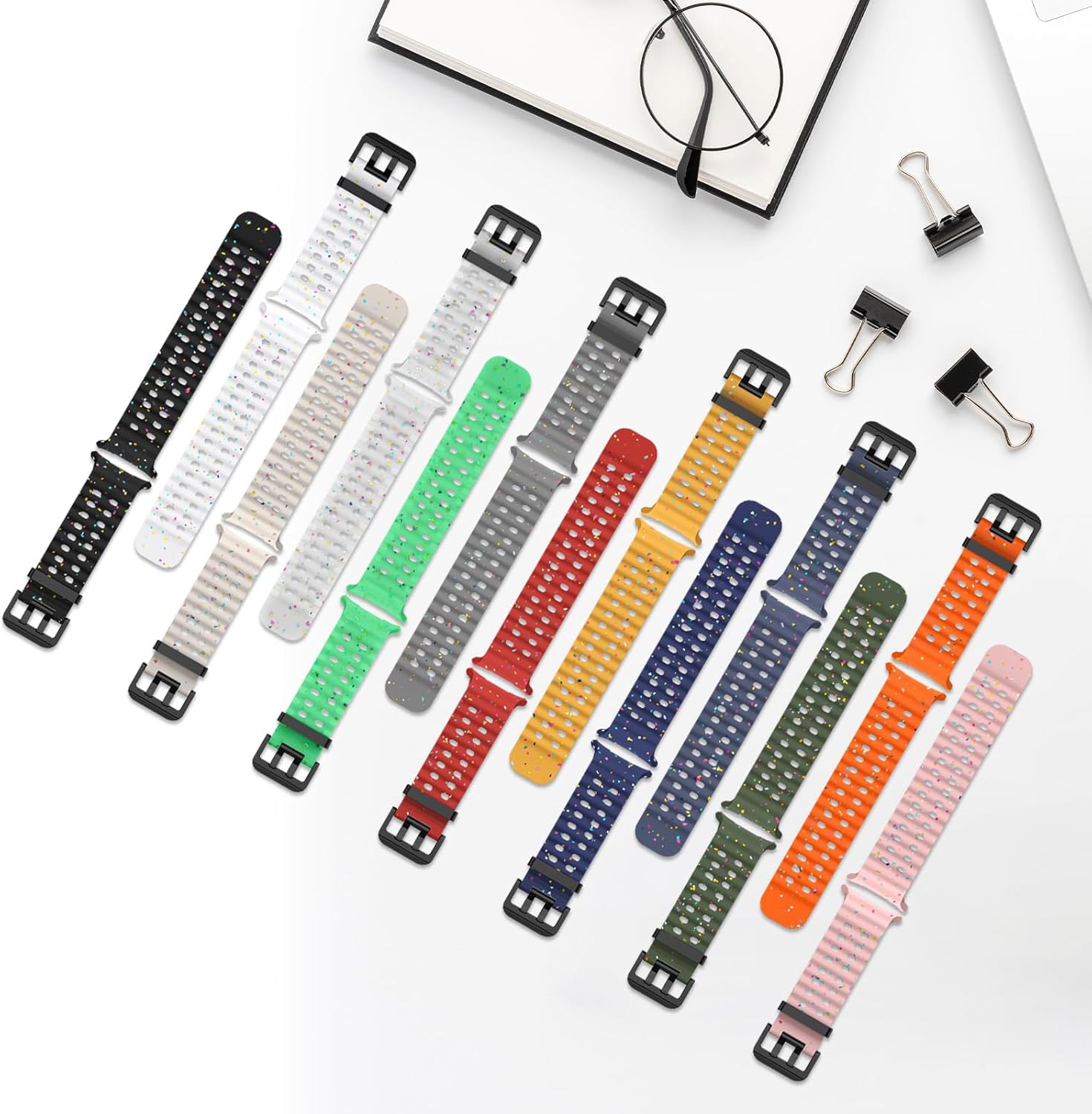 【Unique Colorful Flakes Design】: This sports band uses color sheets to form a random pattern, which makes each strap unique. They are like vibrant color scraps scattered on the strap, adding a pleasant feeling. The transparent luminous color shows its unique advantages, and it glows at night, adding a touch of fun.
