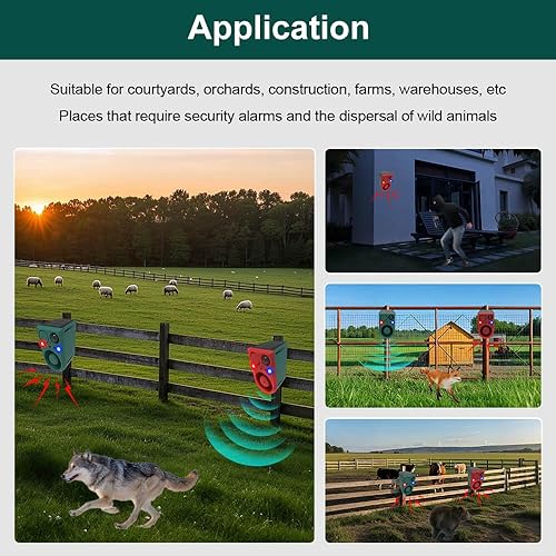 4, Protect Your Families Effectively : ultrasonic and 13 various loud alarm sounds can make the intruders escape quickly.( including dog barking&gunshot,wolf howl,eagle call,erecrackers,lion roar,pig killing sound,explosion sound,didi sound,car speaker sound, alarm,bell,siren) . a single sound can not work any effect.