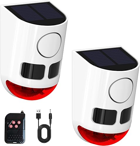 Solar Motion Alarm Outdoor to Keep Your Families Safe: solar detector alarm with sturdy ABS casing, 125° sensing angle, which will widely capture any movement within 5-8 meter and activate the sound and light alarm to scare animals and thieves.