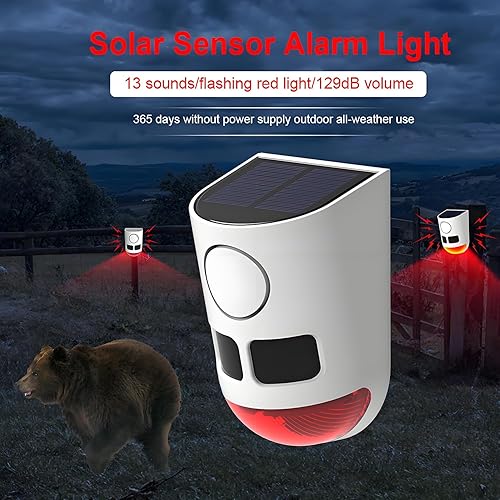 Comment on "Solar Strobe Light Motion Detector Alarm: Dog Barking and Gunshot Sound, 13 Kinds of Warning Sound Loop Playback, 130db Noise Maker, 4 Working Mode, Waterproof for Home, Farm - USB Charging (1 Pack)(1 Pack)"