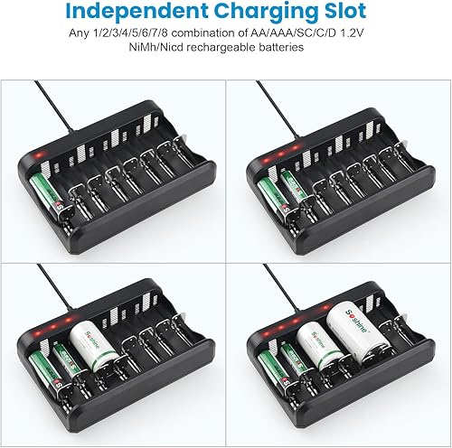 Soshine AA AAA Battery Charger,8 Bay C D Battery Charger for AAA/AA/SC/C/D Ni-MH Ni-CD Batteries (USB Fast Charging, Independent Slot) (C02+D11000)(C02+D11000)