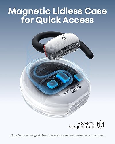 Soundcore V40i by Anker, Open-Ear Headphones, Clear Design, Lidless Case, 4 Adjustable Positions for Every Ear Size, Richer Bass, IP55, 21H Playtime, AI Clear Calls, Bluetooth 5.4, App Control(White,Standard,Classic)