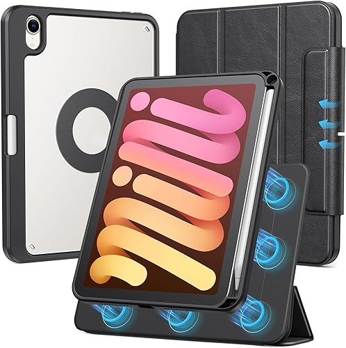 Automatic wake/sleep: The magnetic case can automatically turn the screen on and off with the opening and closing of the cover. No buttons, no hassle,and it can extend the battery life of your iPad mini a17 pro