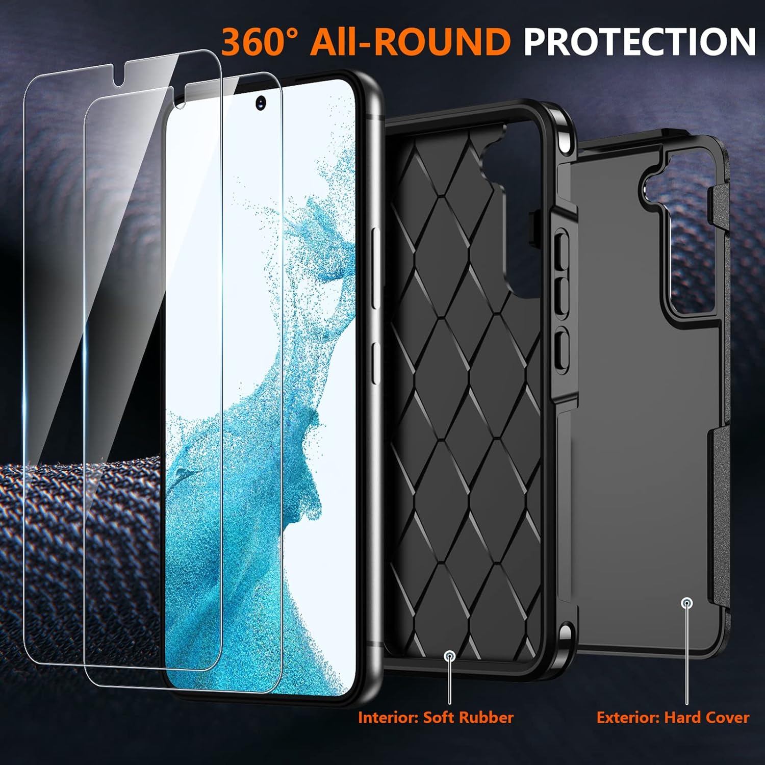 SPIDERCASE for Samsung Galaxy S25 FE Case,[10 FT Military Grade Drop Protection] [Crystal Clear] [Not-Yellowing] Slim Fit Shockproof Anti-Scratched Rugged Phone Case,Clear(Black,S22 6.1'')