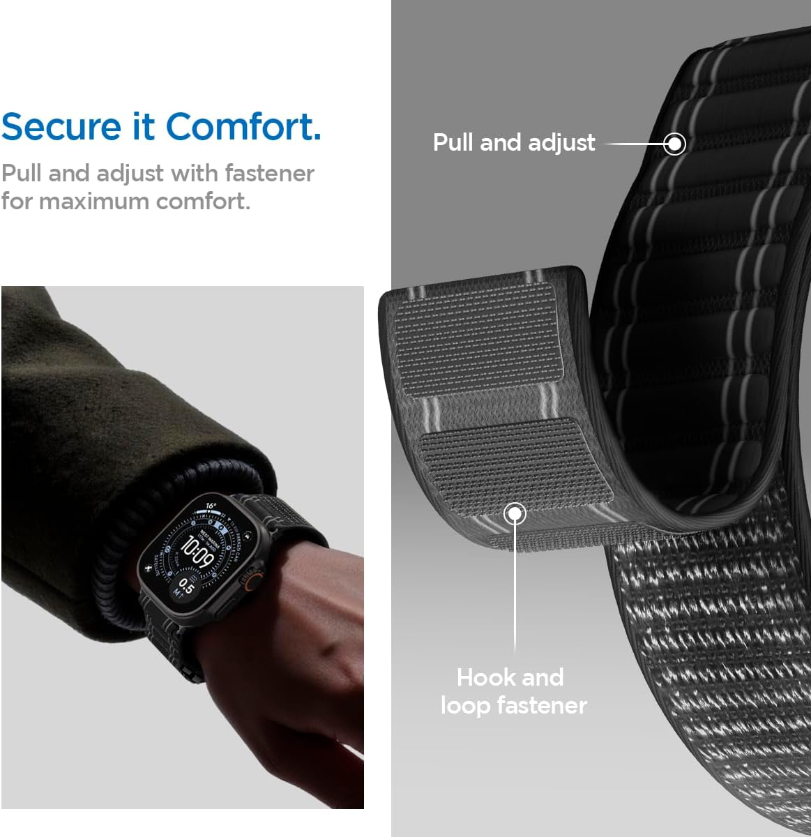 Spigen for Apple Watch Band, Compatible with Ultra 3/2/1 49mm, Series 11/10 46mm, 9/8/7 45mm, SE3/SE2/SE/6/5/4 44mm, 3/2/1 42mm WBF0 Lightweight Fabric Strap - Black(Black)