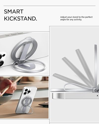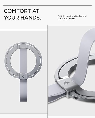 Spigen for MagSafe Phone Grip, Compatible with iPhone 17/16/15/14/13/12 Air/Pro/Pro Max, Pixel 10 Series, Pixelsnap & More Magnetic Phone Holder with Finger Loop Nylon Strap - Black (OM103)(Silver)