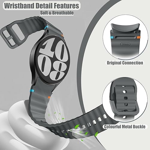 INNOVATIVE BRAIDED SILICONE STRAP DESIGN: Featuring a unique wave pattern combined with soft, lightweight silicone, this Ynitec Galaxy Watch 7 band provides a comfortable and breathable fit. Made from premium, skin-friendly silicone, it is resistant to sweat and water, ensuring durability and easy maintenance. Known for its stain resistance and ease of cleaning, this material preserves the strap's beauty and utility over time, making it a long-lasting, stylish choice