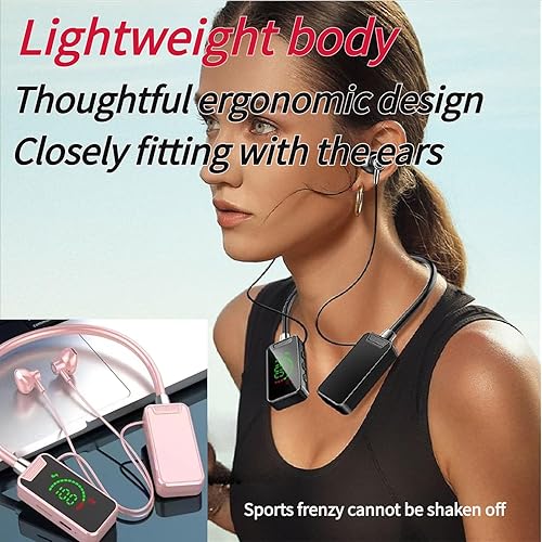 Sports Karaoke Bluetooth Earphones, Wireless Sound Card Live Broadcasting and Audio Editing Earphones, Bluetooth Neck-Hanging Earbud Headset, Comfortable Fit and Freedom of Movement (Black)(Pink)