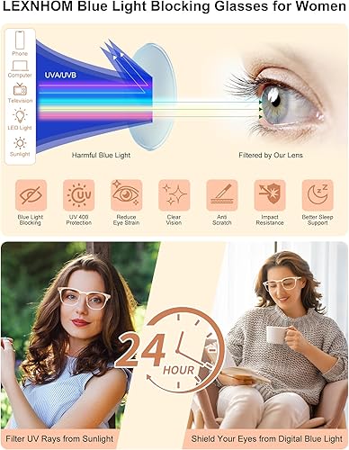 【UV400 & Blue Light Protection】Equipped with high-quality PC lenses and UV400 protection, these blue light glasses for computer use filter harmful rays and minimize digital glare. Ideal womens blue light glasses for daily screen use, they help reduce fatigue and protect eyes during work, reading, or browsing—truly among the best blue light glasses for all-day comfort. The ideal gift for women who experience eye strain from daily computer or phone use.
