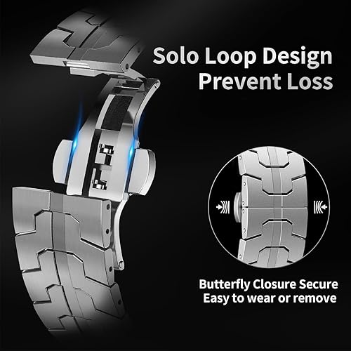 ✅【New Design】BBAMEN Luxury Bands for Galaxy Watch 8 Series Wristband feature a lugless design that seamlessly blends with the Watch body, and metal folding buckle with two double buttons lock the band easily and safely, ensuring a sleek look and a flexible, snug and stable fit, especially during intense activities. Plus, with the intuitive Dynamic Lug System design, changing straps becomes an effortless pleasure that avoids any unnecessary complexity.