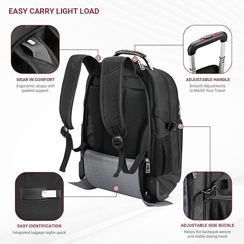 CARRY-ON SIZE – Airline Approved Designed to meet most airline carry-on standards, this wheeled backpack fits in overhead bins with ease. A practical rolling back pack for professionals, a stylish backpack roller, and one of the best rolling backpacks for travel you can count on.