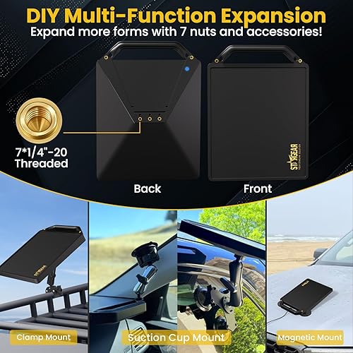 Ultimate Mounting Versatility: Starlink Mini portable protector features 7 built-in 1/4"-20 threaded holes, enabling limitless DIY mounting possibilities. The starlink mini case can be easily attached to your vehicle with a grip mount, adhered it to car dashboard, or magnetically secured to any steel surface. This DIYer-friendly accessory ensures a quick and secure setup for most scenarios, making it perfect for expandable and transformable on-the-go use.