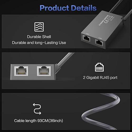 Starlink Ethernet Adapter for Starlink Gen 2, Multi Ports Adapter Starlink to RJ45 Fast&Stable Network Connection 1 to 2 [2 Devices Network Simultaneously] - Up to 1 Gbps