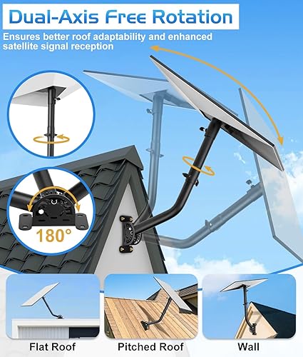 【Effortless Angle Adjustment for Stronger Signal】The mount kit features a 180° adjustable base and a 360° rotatable pole, allowing you to fine-tune your Starlink dish direction for the best signal reception. Adjustments can be made anytime without removing or reinstalling the mount.