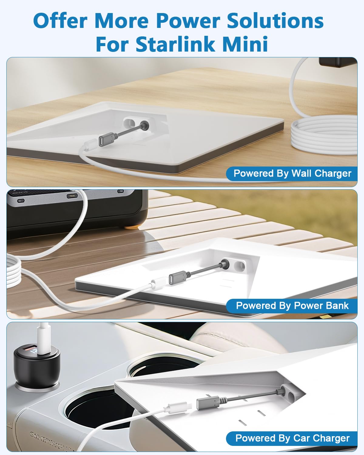 Durable and Portable -- Built to endure 30,000 bends, 10,000 plug cycles, it offers peace of mind for decades to come. Plug and play. When traveling, you don't need to carry a separate Starlink mini charger. It's a definite must-have Starlink mini accessory!