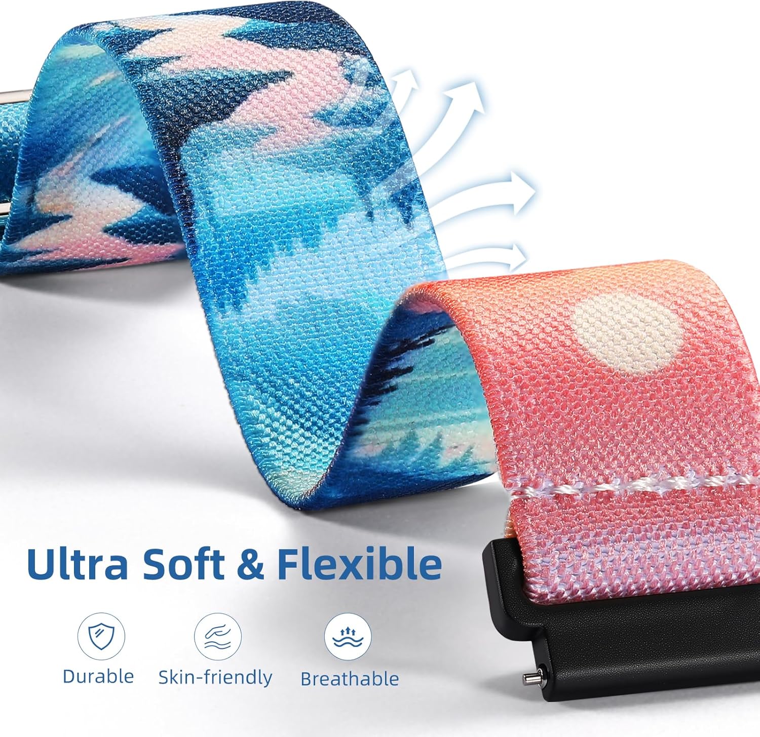 【Compatibility 20mm Watch Bands】 - The Stretchy Colorful Nylon Bands Compatible with Samsung Galaxy Watch 7/FE band(40/44mm), Samsung Galaxy Watch 6 band(40/44mm), Galaxy Watch 6 Classic (43/47mm), Galaxy Watch 5/4 (40/44mm), Galaxy Watch 5 pro (45mm), Galaxy Watch 4 Classic (42/46mm), Galaxy Watch 3 (41mm), Galaxy Watch (42mm), Galaxy Watch Active2 (40/44mm), Galaxy Watch Acitive (40mm).