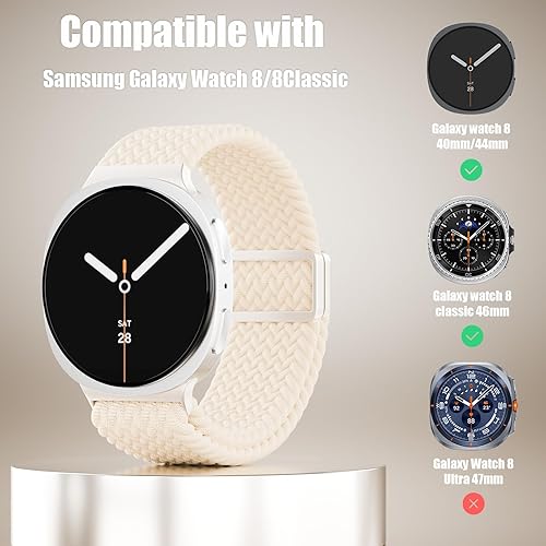 [ Comfortable to wear all day long ] Upgraded more comfortable woven fabric , skin-friendly , flexible and lightweight , bringing a comfortable wearing experience . Strong magnetic buckle for your Samsung Galaxy Watch 8 / 8 Classic safety escort . A variety of colors to choose from, more attractive for daily life . Whether it's for work , sport ,holiday ,daily wear , travel , party or business settings , it is a good choice