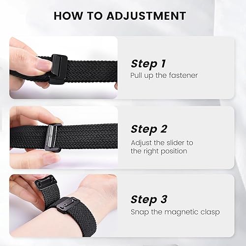 Strong Built-In Magnetic Closure: Upgraded internal magnets offer a firmer hold and won’t pop off during workouts or daily wear. Easily slide the metal buckle to adjust the length for a snug fit. One size fits for wrists 6.3" - 8.9" (160mm - 225mm)