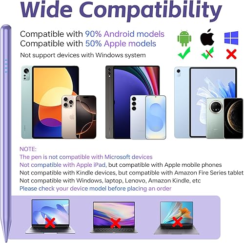 【Wide Compatibility】 This Samsung tablet pen is primarily designed for Android devices on the market. Phone stylus compatible with Samsung/OPPO/Huawei/Xiaomi/ViVo/iPhones 6-15 tablets, smartphones (Note: Not compatible with iPads, Lenovo, Windows, Microsoft, laptops, and Amazon Kindle)