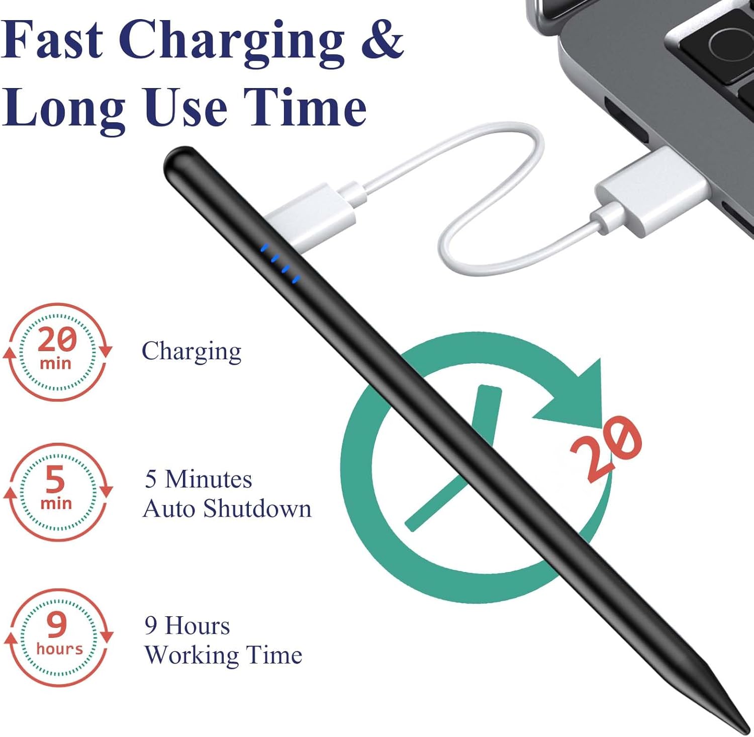 ✍【Fast Charging & Long Battery Life】Kenkor ipencil With USB-C cable, With USB-C cable, takes 20 minutes to fully charge and lasts up to 9-hours usage. This tablet stylus for iPad can standby for 65 days, and stylus is equipped with smart energy-saving features, automatically switching to "sleep mode" after 5 minutes of inactivity to conserve power and avoid unnecessary battery consumption.
