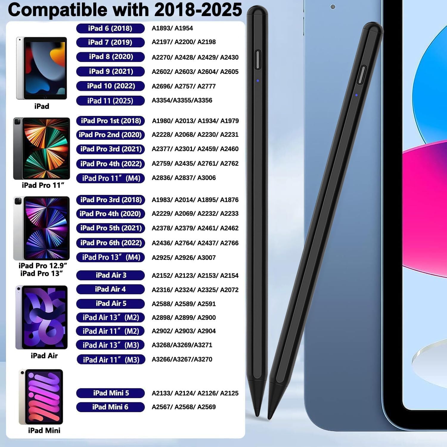 【Stylus Pen for iPad 2025-2018】iPad pen is ONLY Compatible with iPads released in 2018 or Later.Here are compatible Model:11th/10th/9th/8th/7th/6th Gen, iPad Pro 11"/12.9"/M4,iPad Mini A17/6th/5th Gen,iPad Air 3rd/4th/5th/M2/M3 Gen,iPad Pro 12.9" 6th/5th/4th/3rd,iPad Pro 11" M4/4th/3rd/2nd/1st. Please check the product model before placing an order.Check your iPad model in [Settings > General > About].