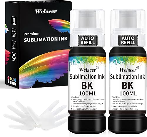 Welacer Sublimation Ink compatibled with All Inkjet Printers, for any EcoTank Photo model (AutoFill) as ET-2400, ET-2800, ET-4800, ET-8550, ET-2850, ET-2803, ET-15000, ET-2720, ET-2760, ET-2710, ET-3710, ET-3760, ET-4700, ET-4760, ET-16600, ET-16650; WorkForce WF-7820, WF-3640, WF-3620, WF-7710, WF-7720, WF-3540, WF-3520, WF-7010, WF-7110, WF-7210, WF-7510, WF-7610, WF-7620; XP1500, XP4100, XP4105, L1800, L3110, L3150, ST-C2100, ST-C4100, C88, C88+ printers ect.