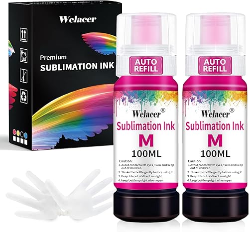 Extra Volume and Bang for your Buck: Welacer sublimation ink works just like what you get from the original manufacturer, just cheaper. The sublimation set includes 1x100ml black sublimation ink; 1x100ml blue sublimation ink; 1x100ml magenta sublimation ink; 1x100ml yellow sublimation ink; 1 high-temperature adhesive tape, 2 pairs of gloves, 4 needle tubes.