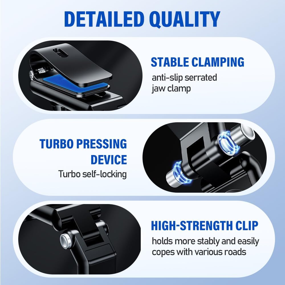 【Sturdy】Made from high-quality ABS plastic and metal materials, this Sun Visor Phone Mount ensures durability and stability. The non-slip thick silicone pad and curved base prevent damage to your devices while providing a firm hold, keeping your smartphone secure even on bumpy roads.