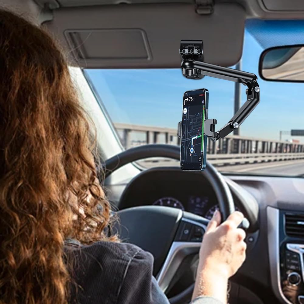 【Versatile Design】The Sun Visor Phone Holder features a foldable design, allowing it to be easily mounted on your car's visor or rearview mirror. This multifunctional phone holder is suitable for various settings, including your home kitchen counter.