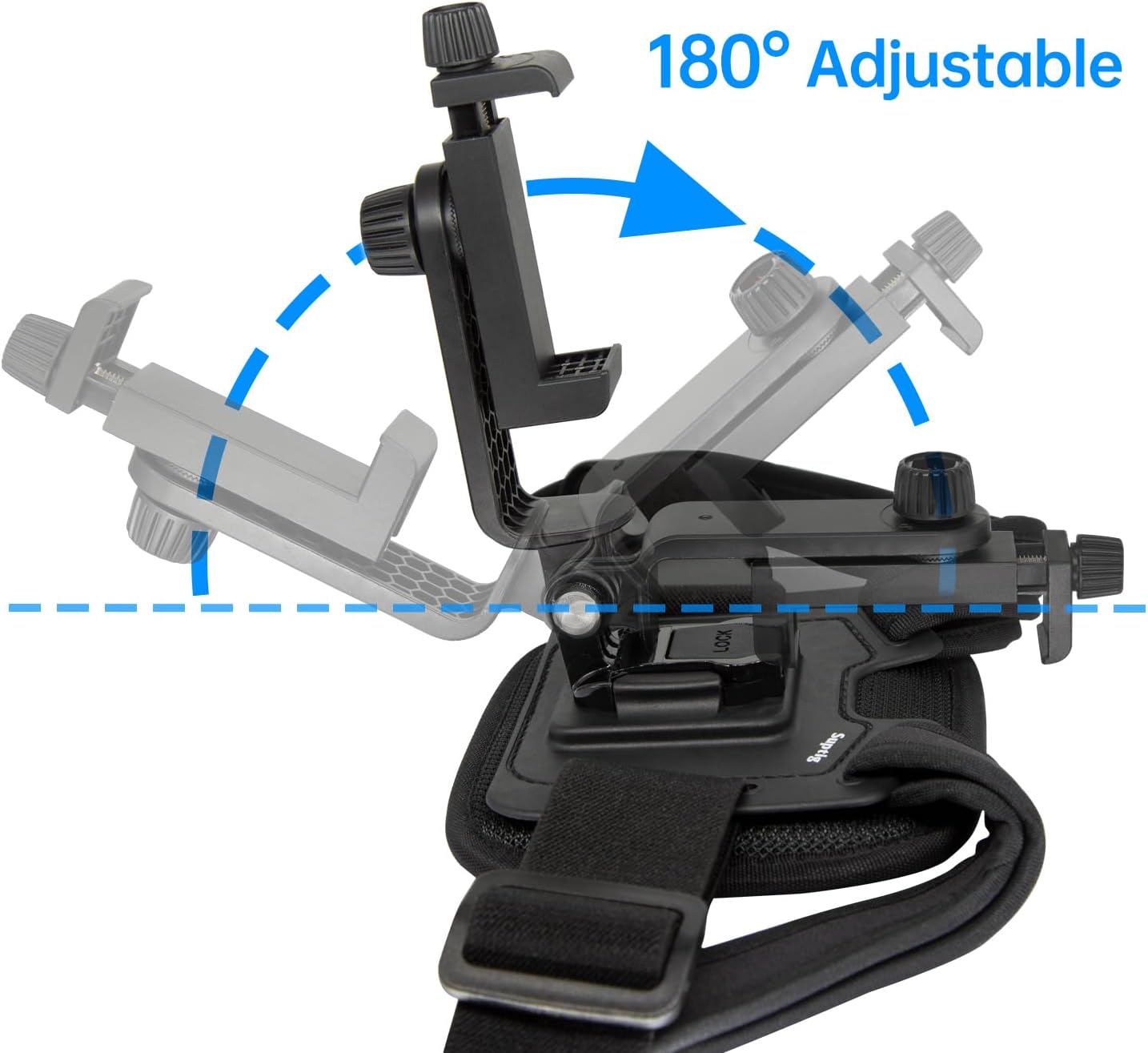 Wide Compatibility: The phone holder has an adjustment range of 2.16 inches to 3.85 inches (55 to 98 mm), compatible with iPhone, Samsung Galaxy and most smartphones; the J-hook bracket can be adapted to all Go Pro, DJI Osmo, AKASO, Install360 action cameras.